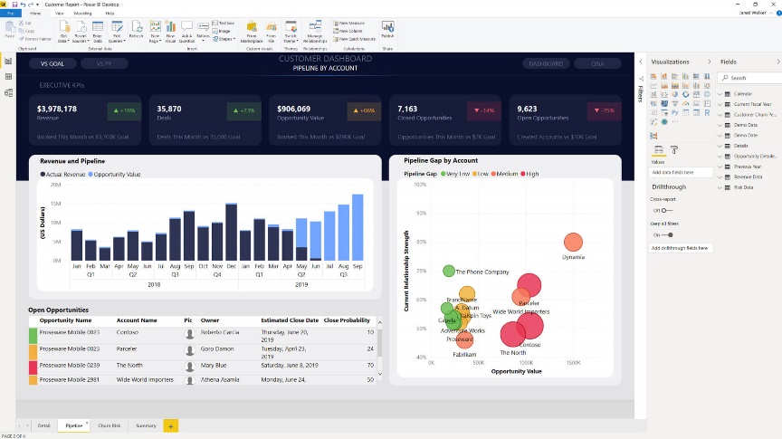 다양한 원본에서 데이터를 통합하여 실행 가능한 인사이트를 제공하고 비즈니스 결과를 끌어내는 몰입적인 대화형 대시보드 및 보고서를 만들 수 있습니다.